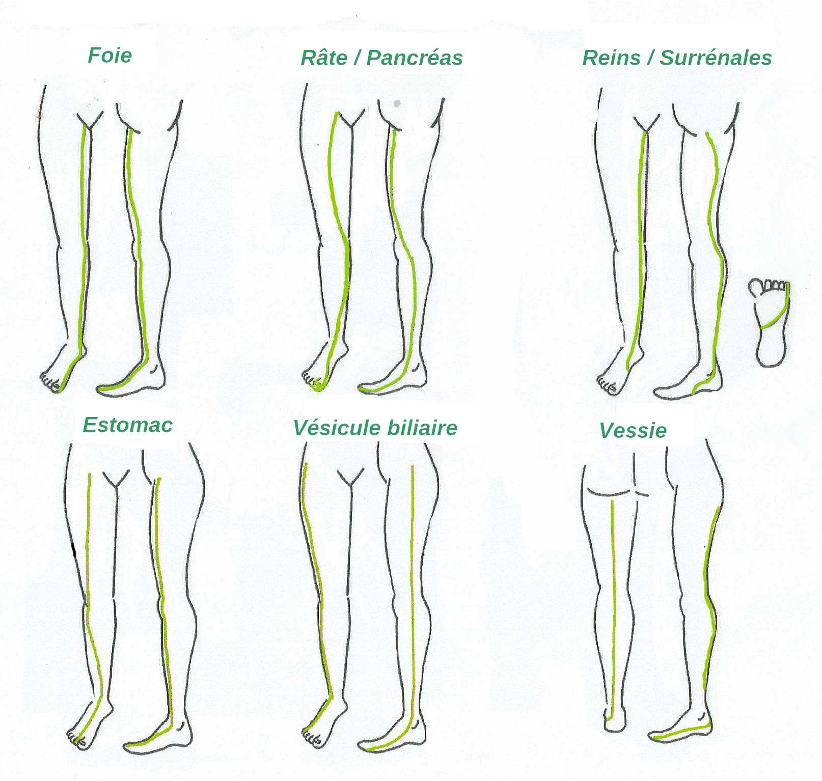* Rate, Vésicule biliaire, reins, surrénales (tension), Vessie, Estomac